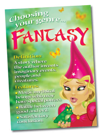 Make a spectacular and useful display in your library with these new large-format posters. Each poster clearly defines the genre and lists features of that genre. Genres included: Mystery, Humour, Fantasy, Relationships, Historical Fiction, Relationship Stories, Adventure, Sport Fiction.