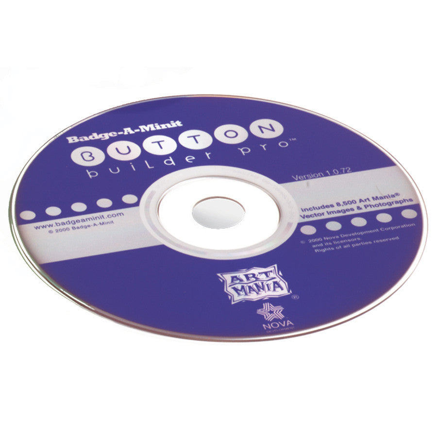 everything you need to create badge designs on your computer. Contains 8,000 clip art images and templates for all size badges. Or use your own photographs. Recommended 133mHz Pentium, Windows 98 2nd edition, ME2000, XP,NT. 64 MB RAM