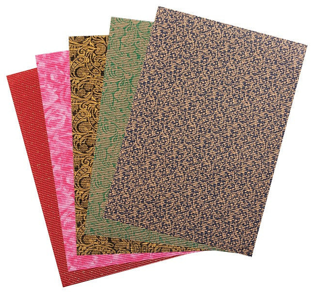 Patterned, corrugated card in 5 different beautiful patterns. Packet of 10 x A4 sheets.